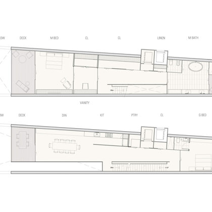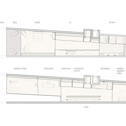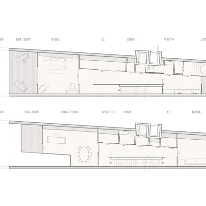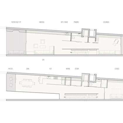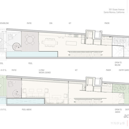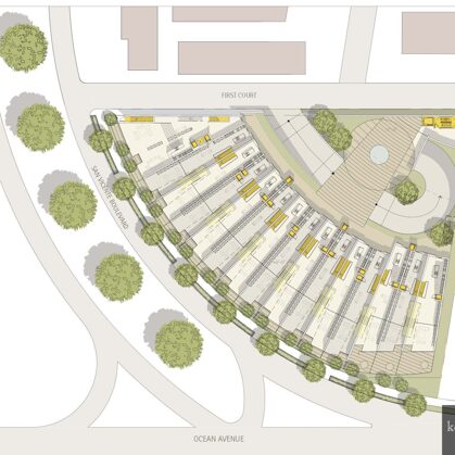 Each unit lining the street will command panoramic vistas of the captivating Malibu Headlands and the Pacific Ocean. Access to the residences is facilitated through an exquisite motor court, granting entry to individual elevators that lead to each townhouse from the parking level below. Guests may park within the motor court or utilize the visitor parking located on the first level, adjacent to the sunlit-filled atrium. Within each unit, a light well has been incorporated, allowing natural sunlight to permeate every corner and floor. While the majority of the units comprise townhomes, two duplex units grace the eastern end, penthouse units adorn the rooftop, and six medium-income units are positioned on the opposite side of the courtyard.
