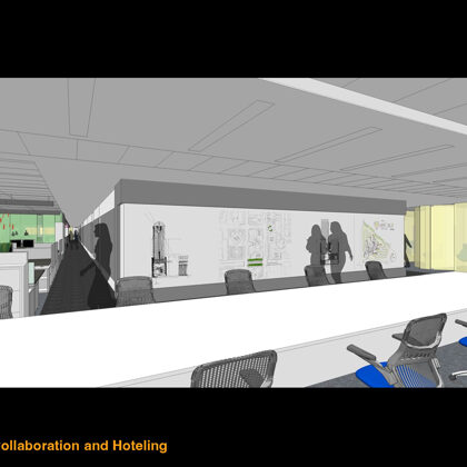 PROJECT/DESIGN STRATEGY: The Jacobs offices in Dallas were designed based on Jacobs' standards, aiming to create an open and collaborative workplace environment that promotes communication, visibility, and mentoring. The design concept utilized a tonal range of crisp whites and sophisticated grays, offset by vibrant color-laminated glass partitions. The office layout centers around a core of support spaces, allowing for a clear and open perimeter. Technology-rich conference rooms divide the open office, offering interesting views across the space. In Dallas, a large multipurpose conference, entertainment, and training area serves as a welcoming space for the community, showcasing the Jacobs culture. With high ceilings, warm materials, and advanced audio-visual technology, this room caters to the needs of Jacobs and the wider Dallas business community.