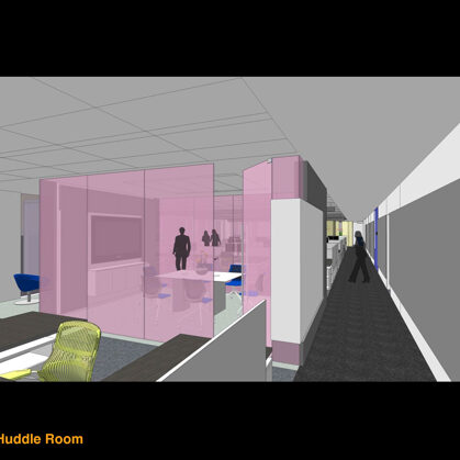 UNIQUE INSTALLATION CHALLENGE STRATEGY: The tight construction schedule posed a challenge for the design and construction teams, necessitating quick and creative solutions. All workstations, room layouts, flooring materials, and furniture were meticulously aligned with a highly integrated ceiling design. To manage construction costs, broadloom carpeting was chosen instead of carpet tiles. A close and collaborative relationship between the design team and contractor played a crucial role in achieving the targeted move-in date for the project.