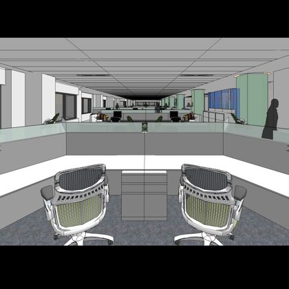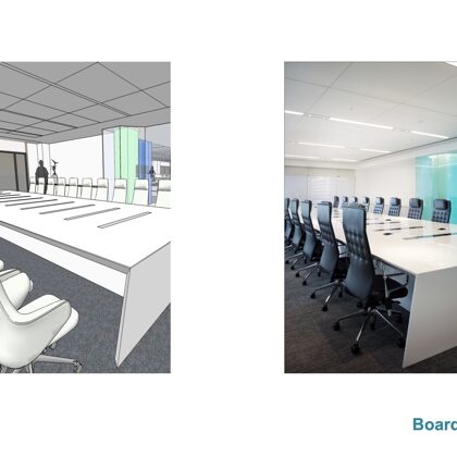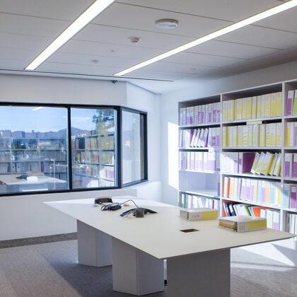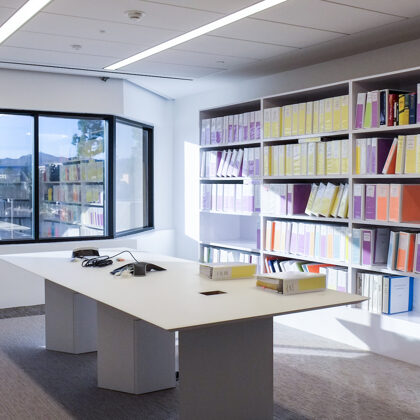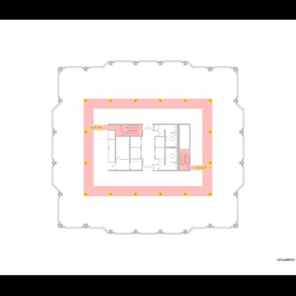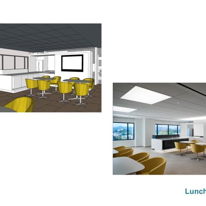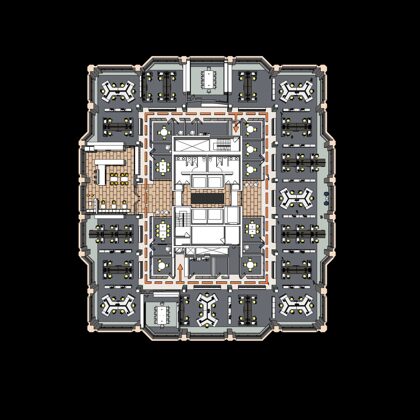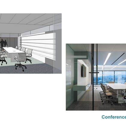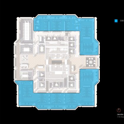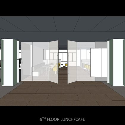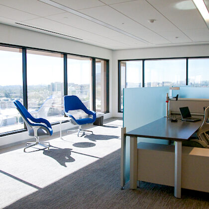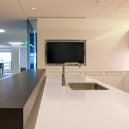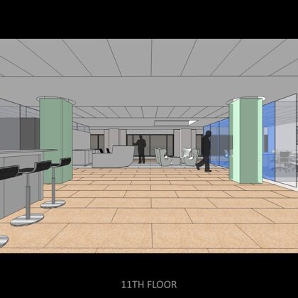 Each floor offers an attractive coffee bar and kitchen which are designed with stools and a counter for serendipitous meetings. One of the heritage functions of a sitting room lounge also was maintained at the center of the executive floor and has commanding views of the nearby mountain range to the north.