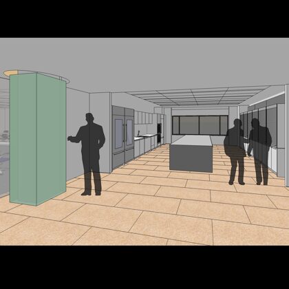 A 26-week construction schedule that was shortened to 14 weeks challenged the design and construction team to work quickly and creatively. One key strategy shaved seven weeks off the schedule. Knowing that 20,000 square feet was the threshold for Tier 1 reviews for city approval, the design team submitted each floor plate (which was just under 20,000 SF) for individual approval, shortening the review time from eight weeks to one. A close and collaborative working relationship between the design team and contractor also helped the project hit the target date for substantial completion.