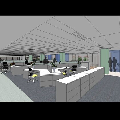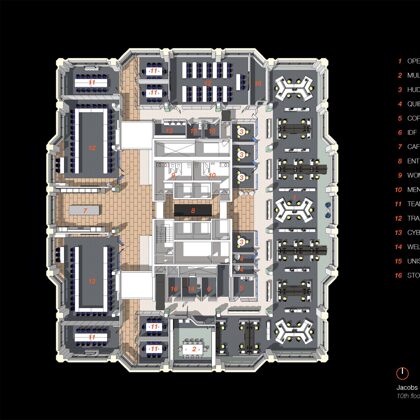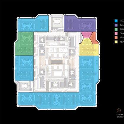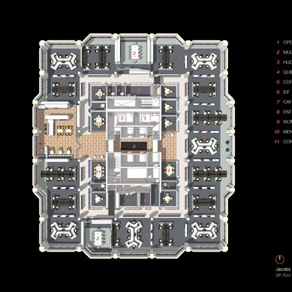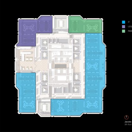 This new corporate headquarters occupies four and a half floors in an existing building. The client wanted to create an open workplace environment to reduce hierarchy and increase visibility, communication, collaboration and mentoring opportunities. As a company that employs a staff of 65,000 worldwide and has a real estate footprint of more than 4 million square feet around the globe, creating effective standards to accommodate the work styles of various business units, types of working professionals and cultural and geographic settings has a significant impact on productivity and operational costs for themself. Moreover, the design of the corporate headquarters sets both the principles as well as the aesthetic for their offices around the world. Department managers and principals were consulted about workflow and day-to-day activities. The overlay and integration of infrastructure and technology requirements also factored heavily into the development of the standards.