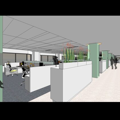 Several sustainability strategies were implemented in the project including sitting the office in an urban area with an existing infrastructure. The site is located in an established, walkable community (WalkScore 83) residing approximately 350 feet from a light rail station. A unique feature of the office design strategy was not to use any enclosed offices. This “open office” design strategy maximizes the daylight harvesting potential and takes advantage of the surrounding views. To control heat and glare, a fully automated window shade system is tied to a radiometer on the roof, adjusting the shades based on the sun’s angles throughout the day. An abundance of LED lighting, all of which is controlled by motion and photo sensors, also is integrated with the window shade system. Cradle-to-Cradle Certified workstations were specified for the office, and at least 75 percent of construction waste was diverted from the landfill during construction.